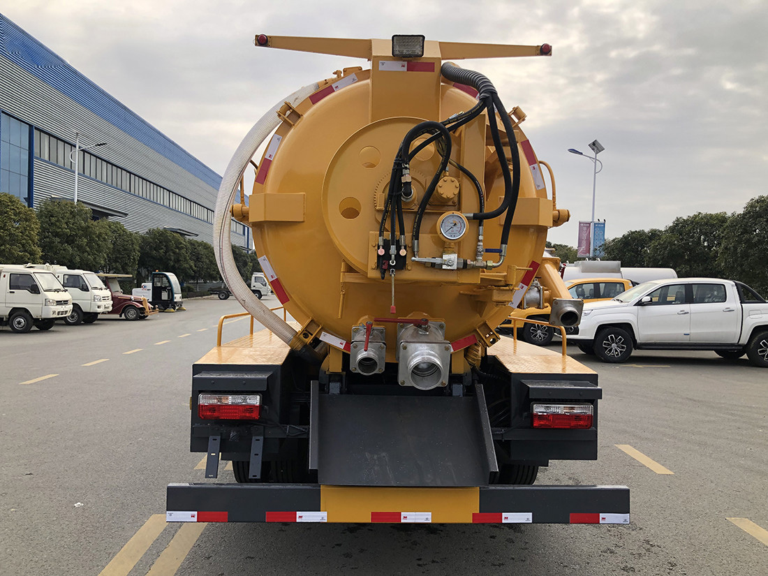 吸污部分:7方污罐,罐體6mmQ235優質碳鋼,配淄博SK-12水循環泵,8米吸污管一根,進氣管加不銹鋼過濾網,真空防溢閥,后蓋卡扣鎖緊,視污量管,后尾部加裝1個力拓牌100mm的球閥吸污口150mm排污口,100mm口徑側抽,罐體帶舉升功能,后門帶液壓開啟。